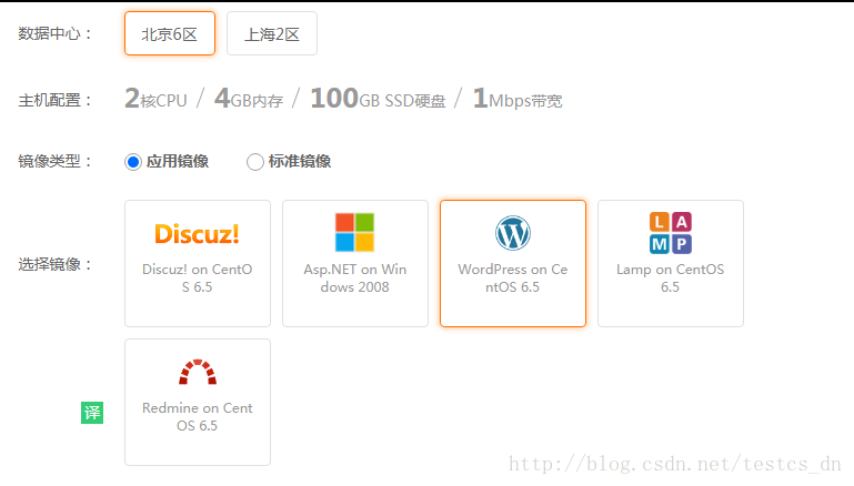 3、选择WordPress on CentOS 6.5 的镜像。为什么选择这个镜像呢?它很神奇,哈哈。