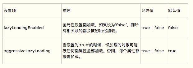 <!-- lazyLoadingEnabled:延迟加载启动,默认是false -->