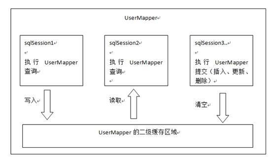 在同一个namespace下的mapper文件中,执行相同的查询SQL,第一次会去查询数据库,并写到缓存中;第二次直接从缓存中取。当执行SQL时两次查询中间发生了增删改操作,则二级缓存清空。