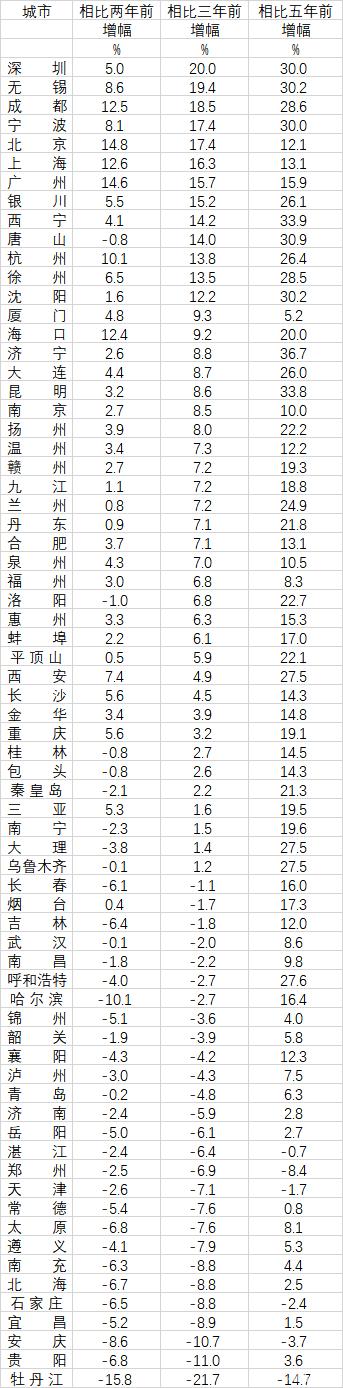 近三年26个省会城市二手房价格变化那些房价一直没有下跌,反而还在上涨的城市,是不是发展的更好呢?我觉得是这样的。相比五年前,大多数城市还是上涨的。经常有人说,中国股市永远30