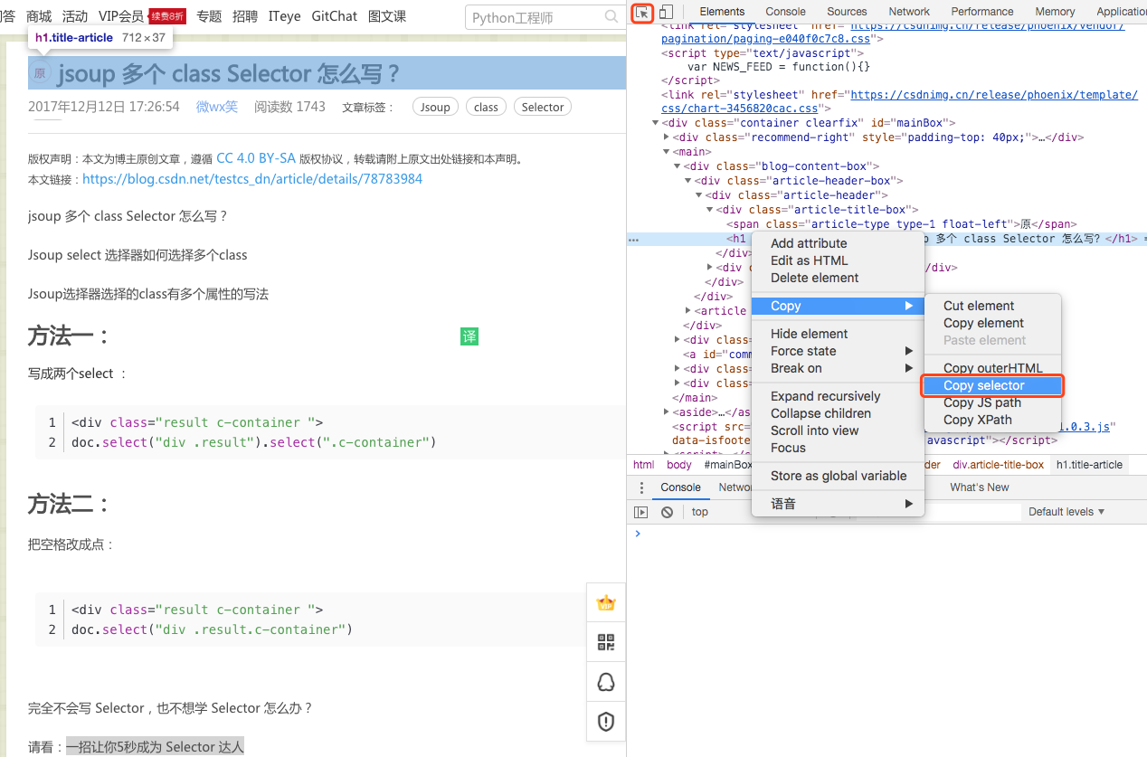 jsoup,js选择器Selector不会写?一招让你5秒成为 Selector 达人(图文)