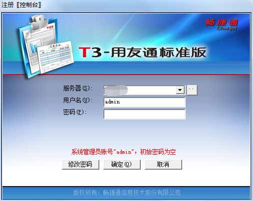 可能看到不同的登录窗口,如果本机没有安装用友T3可能看到的是这样的界面: