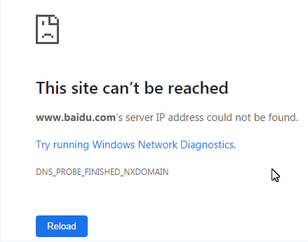This site can’t be reachedwww.baidu.com’s server IP address could not be found.