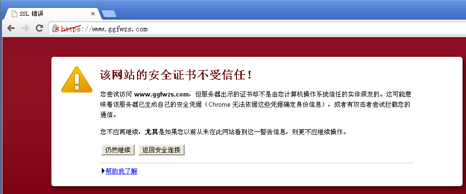 访问 https://www.ggfwzs.com/,这个版本是可以访问的,弹出下面的提示,点击仍然继续就可以了。