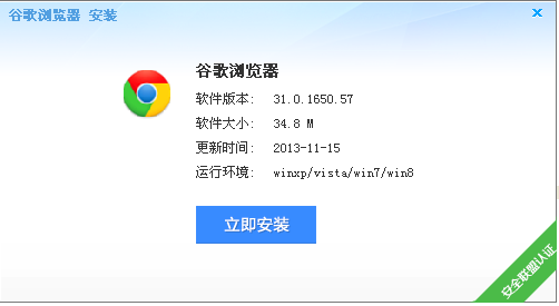 3、安装 Chrome 31.0.1650.57 版本,这是很久之前下载,保存在百度网盘的