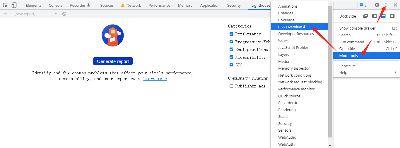 chrome新版没有Audits,chrome浏览器开发者工具为何找不到audits目前使用的版本已经找不到audits了,只能找到一个CSS Overview,但是没也没删除未使用的多余无用CSS的功能。