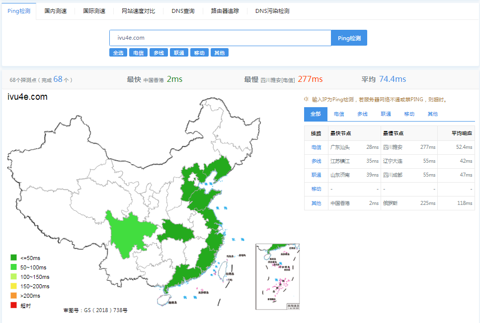 4、通过第三方网站来测试:https://ping.chinaz.com/