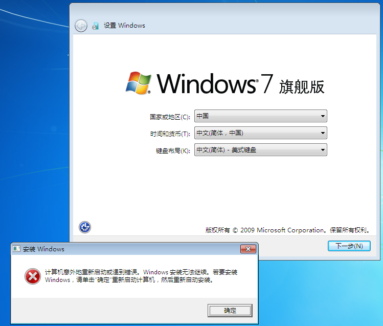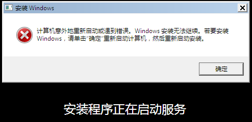 计算机意外地重新启动或遇到错误。windows安装无法继续。若要安装windows,请单击“确定”重新启动计算机,然后重新启动安装