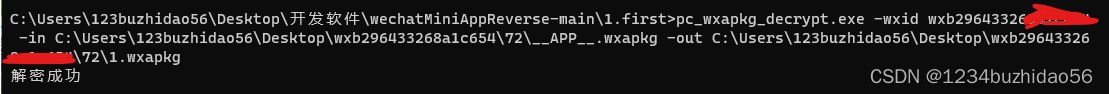 pc_wxapkg_decrypt.exe -wxid (小程序id,就是包的名字) -in (wxapkg的位置) -out (解密后的路径)