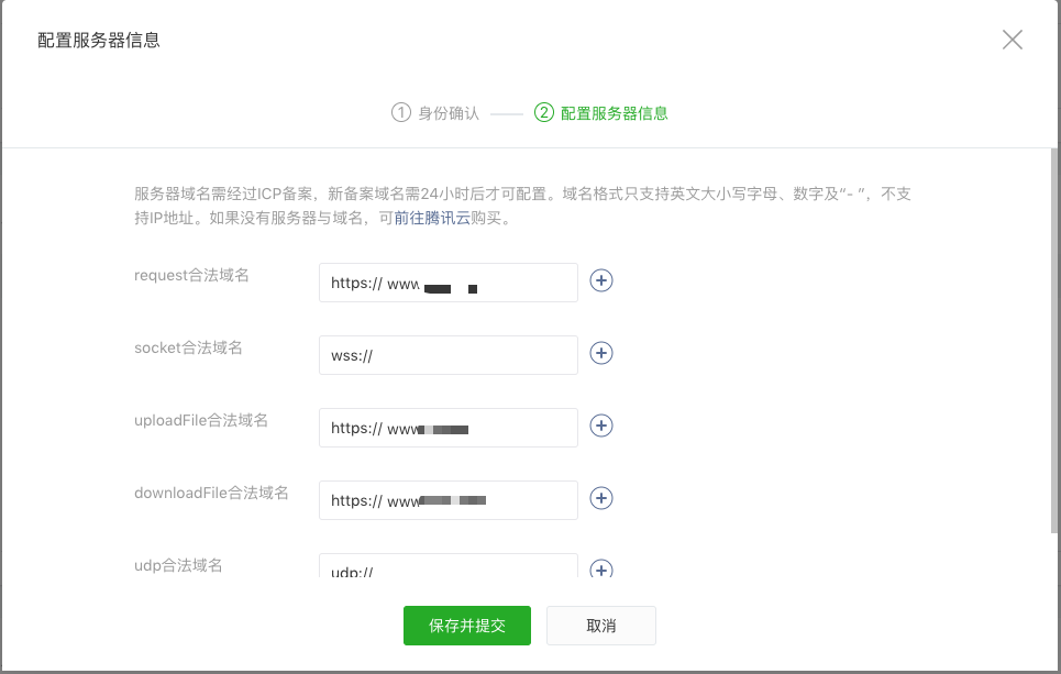 服务器域名需经过ICP备案,新备案域名需24小时后才可配置。域名格式只支持英文大小写字母、数字及“- ”,不支持IP地址。如果没有服务器与域名,可前往腾讯云购买。