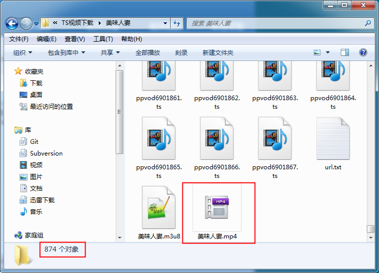 打开下载的目录,所有文件都下载来了!MP4文件可以直接播放了。这时,其它的文件都可以删除了。